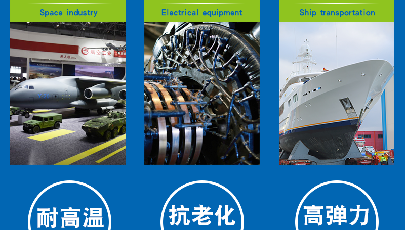 1.該產(chǎn)品具有優(yōu)良的耐熱空氣老化性能、耐臭氧性能、絕緣性,并耐燃料油和潤(rùn)滑油,可在溫度-40~+250℃的條件下的空氣或油類(lèi)介質(zhì)中工作。