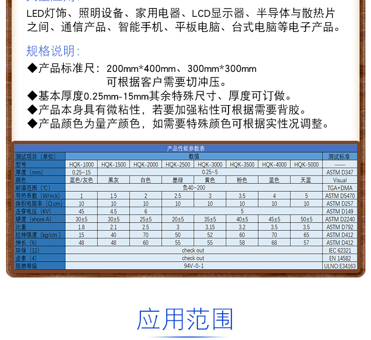 產(chǎn)品規(guī)格:厚度:0.3~15耐溫范圍:﹣40~250導熱系數(shù):2.0W...